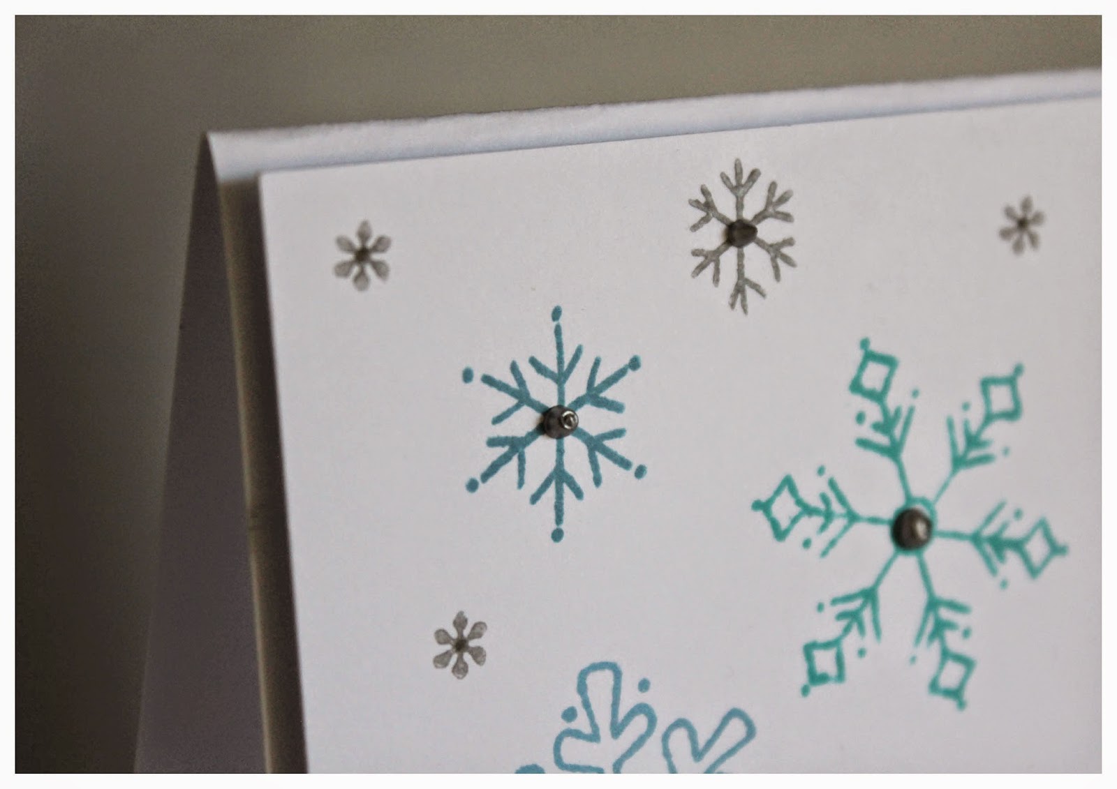 Und dazu zeige ich Euch wieder eine klassische Winter-Karte. Die finde ich total schön! Schlicht, aber edel :-) Vor allem mit dieser silbernen Kante. Die habe ich einfach ins Versa-Mark-Stempelkissen geditscht, dann das Embossingpulver drauf, föhnen und fertig.
